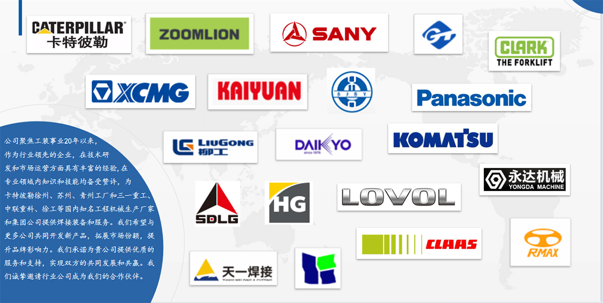 公司成立于2000年,注冊資本1000余萬元,生產(chǎn)面積約10000平。現(xiàn)有員工50余人,專業(yè)工裝設(shè)計師15人。公司設(shè)運(yùn)營管理部、制造部、技術(shù)質(zhì)量部職能管理部門,是集ISO質(zhì)量環(huán)境管理體系、安全標(biāo)準(zhǔn)化企業(yè)為一體的高新技術(shù)創(chuàng)新企業(yè)。 公司主要從事工程機(jī)械制造、焊接工裝、焊接變位機(jī)、智能加工中心夾具、工業(yè)機(jī)器人為核心的非標(biāo)工裝、變位機(jī)、智能拼點(diǎn)、生產(chǎn)線集成配套、裝配線、智能機(jī)器人工作站集成服務(wù)、非標(biāo)專機(jī)設(shè)計制造,為客戶提供一站式整體解決方案和交鑰匙項目。公司聚焦工裝事業(yè)20年以來來,專業(yè)性強(qiáng),為卡特彼勒徐州、蘇州、青州工廠和三一重工、中聯(lián)重科、徐工等國內(nèi)知名工程機(jī)械生產(chǎn)廠家和集團(tuán)公司提供焊接裝備和服務(wù),目前已形成年產(chǎn)值3000余萬元的生產(chǎn)能力。